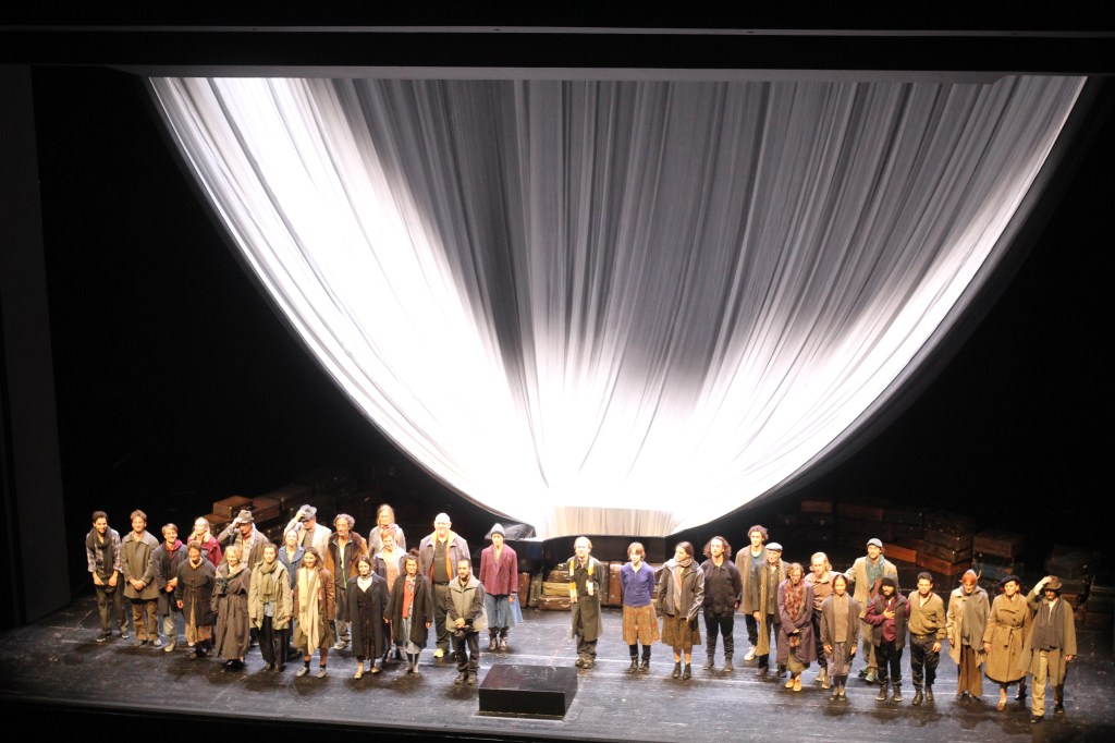 Ogni elemento della dettagliatissima messa in scena si sviluppa da questa linea principale, anche se non tutto può risultare immediatamente chiaro. Io stesso per esempio mi sono chiesto quale fosse il reale ruolo dei giganti in questa rappresentazione: se la corrispondenza tra i viandanti e i perseguitati della Shoah è rafforzata da dettagli visivi come le valigie o una Menorah (il candelabro a sette bracci) nel tesoro restituito da Alberico, chi sono Fasolt e Fanfer, che ambiscono riavere quel tesoro? Poi ho realizzato che anch’essi, da diversi dettagli visivi, fanno parte del Popolo Eletto e che quindi la loro storia, come la storia del tesoro, mostra una specie di corto circuito interno, in cui la violenza subita finisce col divenire violenza esercitata.