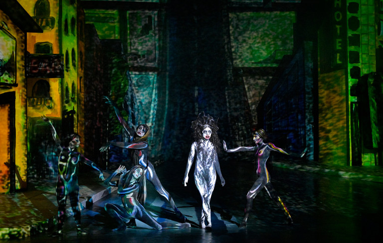 Ma poi compare la Grande Prostituta (il cui accompagnatore, per inciso, si identifica come “Bestia scarlatta” solo dalle corna e dagli zoccoli) e lentamente tutto cambia, virando verso un finale imprevisto, in una coloratissima azione in cui Bene e Male, bellezza e mostruosità, Barocco ed Espressionismo, umano e disumano si compenetrano in una sorta di gigantesca danza macabra, un incubo lucido che il Figlio di Dio, unica persona viva nel contesto, porta alla soglia del risveglio. Ritroviamo qui tutti gli elementi stilistici di Mondtag che avevano caratterizzato anche la sua riuscitissima messa in scena di Der Schmied von Gent ad Anversa, tra cui anche l’apparizione di figure androgine (qui anche con evirazioni e/o mutamenti di sesso) e di gigantesche bambole, così come il rovesciamento ironico o, se si vuole, lo smascheramento del messaggio morale. Davvero un raro esempio di perfetto incontro tra opera e regista, come se ne vedono di rado oggi. D’altronde lo stesso Mondtag ha dichiarato, nell’incontro col pubblico, che se un regista vuole a tutti i costi comunicare un particolare messaggio, dovrebbe lavorare con un compositore vivente a una nuova opera, invece di fare a pezzi le opere del passato, e il magnifico lavoro sull’Anticristo riflette pienamente il suo Credo.