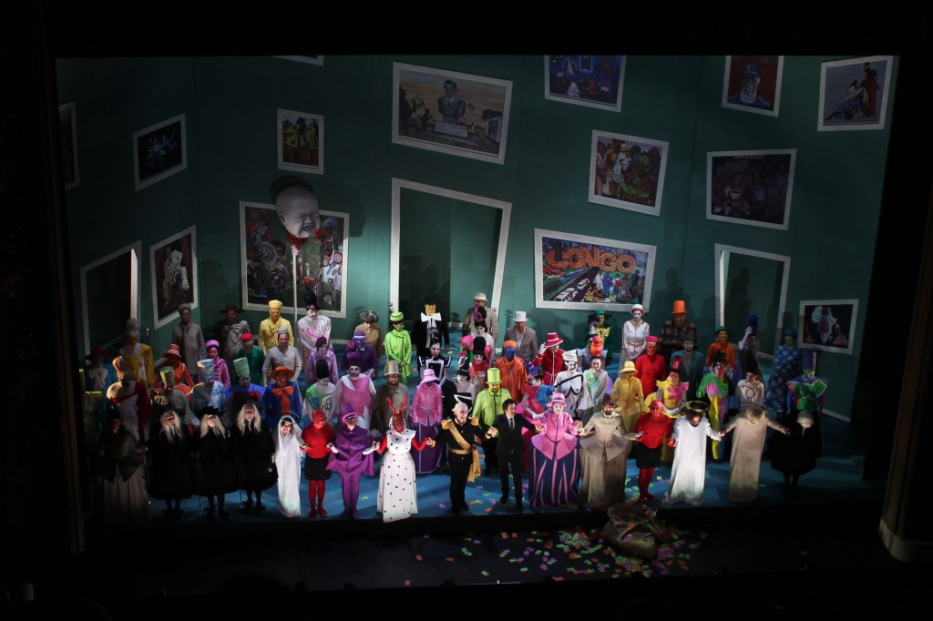 Ma poi compare la Grande Prostituta (il cui accompagnatore, per inciso, si identifica come “Bestia scarlatta” solo dalle corna e dagli zoccoli) e lentamente tutto cambia, virando verso un finale imprevisto, in una coloratissima azione in cui Bene e Male, bellezza e mostruosità, Barocco ed Espressionismo, umano e disumano si compenetrano in una sorta di gigantesca danza macabra, un incubo lucido che il Figlio di Dio, unica persona viva nel contesto, porta alla soglia del risveglio. Ritroviamo qui tutti gli elementi stilistici di Mondtag che avevano caratterizzato anche la sua riuscitissima messa in scena di Der Schmied von Gent ad Anversa, tra cui anche l’apparizione di figure androgine (qui anche con evirazioni e/o mutamenti di sesso) e di gigantesche bambole, così come il rovesciamento ironico o, se si vuole, lo smascheramento del messaggio morale. Davvero un raro esempio di perfetto incontro tra opera e regista, come se ne vedono di rado oggi. D’altronde lo stesso Mondtag ha dichiarato, nell’incontro col pubblico, che se un regista vuole a tutti i costi comunicare un particolare messaggio, dovrebbe lavorare con un compositore vivente a una nuova opera, invece di fare a pezzi le opere del passato, e il magnifico lavoro sull’Anticristo riflette pienamente il suo Credo.